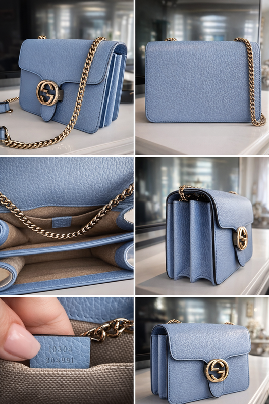 Gucci Interlocking GG Small Shoulder Bag – Blue Leather