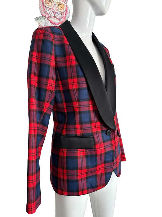 SMYTHE Red & Navy Plaid Satin Lapel Blazer β Size 6