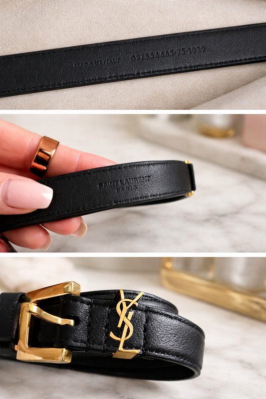 Saint Laurent YSL Leather Belt – Black/Gold (Size 85)