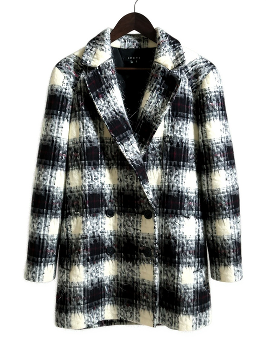 ✨ Theory Shaggy Pea Coat – Wool Blend – Black/White Check – Size Medium ✨