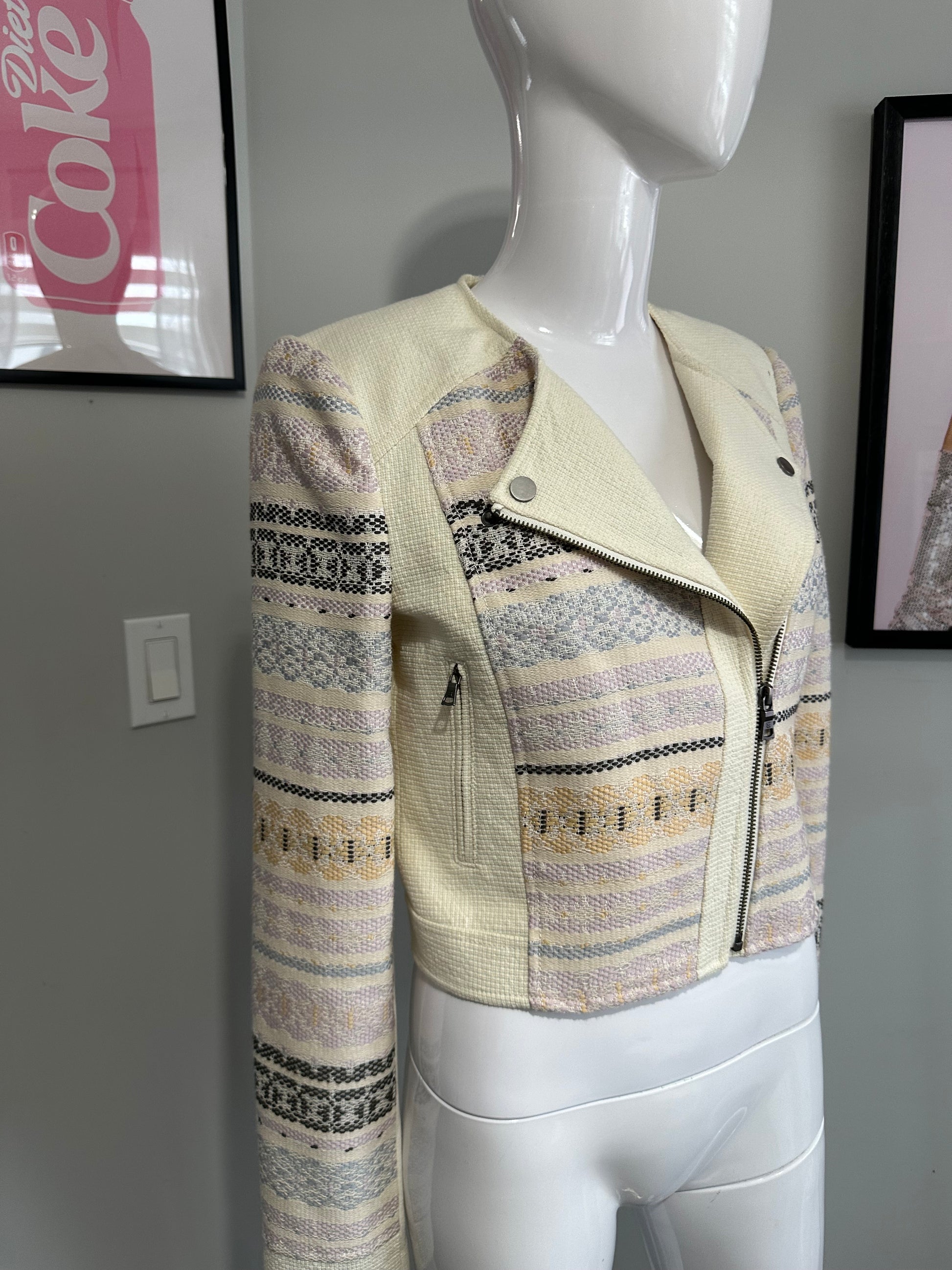 BCBG MaxAzria “Cody” Cropped Moto Jacket – Cream Multi – XS (New With Tags)